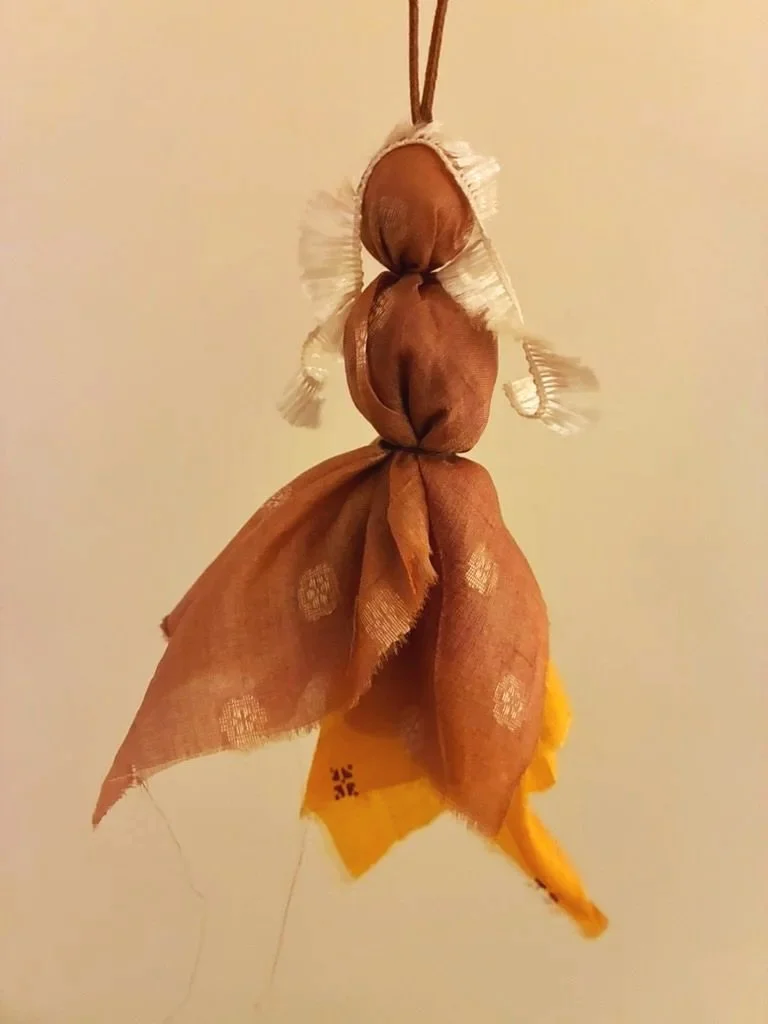 We pondered the words “I am the person I dream of becoming” and brought them to life through mostly fabric and other textiles. There were nine of us in the circle, and each person emerged with something unique to them, in this moment in time.